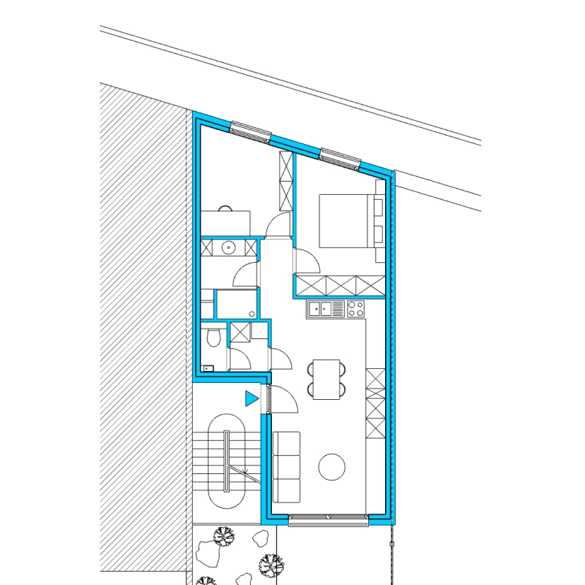 Après l’extension d’une maison de maître (180HER), une dent creuse à l’arrière de la parcelle est comblée par une nouvelle construction.
